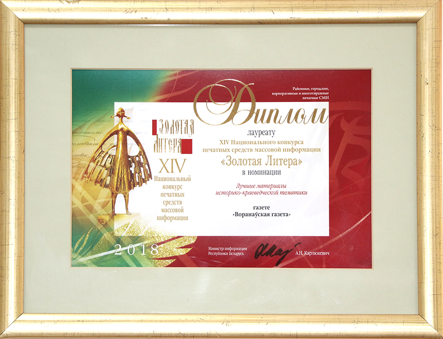 - редактор отдела писем, информации и культуры Марина Кондратович признана лучшим журналистом по итогам областного конкурса на лучшее освещение реализации государственной молодежной политики в СМИ Гродненской области и награждена дипломом за 1 место;