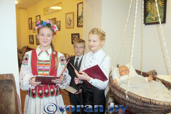 Хлебом-солью встречали гостей белорусочки в национальных костюмах. Духом белорусского этноса, казалось, был наполнен даже воздух. Почетное право разрезать символическую красную ленточку предоставили заместителю председателя райисполкома М.И. Уляшко, начальнику отдела образования, спорта и туризма Е.Я. Ганевич и директору школы Т.С. Берцевич. После торжественного момента ребята и присутствующие гости смогли насладиться просмотром пяти экспозиций музея. В первом зале воссоздан интерьер крестьянская избы XIX века: печь, деревянная кровать, плетеная детская люлька, дубовый стол, скамейка, «куфар», в котором хозяйка хранила праздничную одежду, ткань. Можно было увидеть орудия труда, рушники, скатерти с вышивкой, самотканые полотна и другое. Среди необычных экспонатов — «собака» для снятия обуви, решето, которым накрывали курицу во время высиживания цыплят, масломерка, сеенка. А какие ароматы здесь разносились от настоящих домашних пирогов! Во втором зале представлено творчество местных умельцев: «Вышивка», «Ткачество», «Изобразительное искусство», а также работы учащихся школы. С интересными фактами истории, особенностями быта предков и их традициями, биографиями известных и талантливых земляков посетителей познакомили юные экскурсоводы — ученики 7 класса Ангелина Мацкевич, Настя Вильчевская, Яна Фирко, Настя Кулик, Даниил Бовшис.
