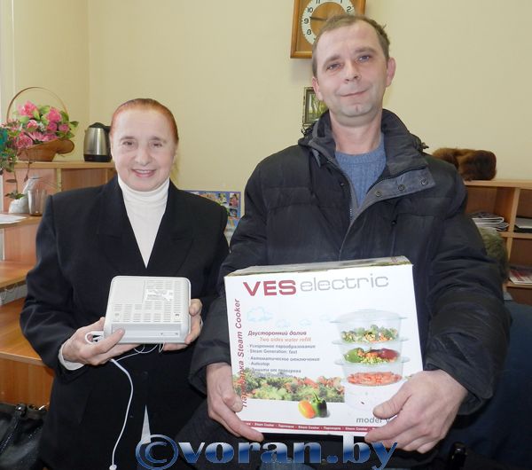 Самым интересным и интригующим моментом подписной кампании на «Воранаўскую газету» стало проведение розыгрыша призового фонда игры «Подпишись — и выиграй». В присутствии членов комиссии по подведению итогов рекламной игры, работников редакции, а также нашего подписчика, читателя с 40-летним стажем Ядвиги Казимировны Кироль из Погородно десять человек — друзей «Воранаўскай газеты» — стали обладателями призов.Каждая квитанция по мере поступления в редакцию была пронумерована. Заготовлено 278 (столько было участников розыгрыша) номерков. Право первой определить победителя предоставили гостю редакции — Ядвиге Казимировне. Она определила «судьбу» двух главных призов: кухонного комбайна, который достался Ольге Войткун, молодому бухгалтеру из Переганцев (на снимке 2), и пароварки — на этот раз посчастливилось земляку нашей читательницы — Юрию Вашкевичу (на снимке 3 вместе с односельчанкой Т. Карвель), одному из сотрудников РОЧС, которые, к слову, всем коллективом подписались на районку.