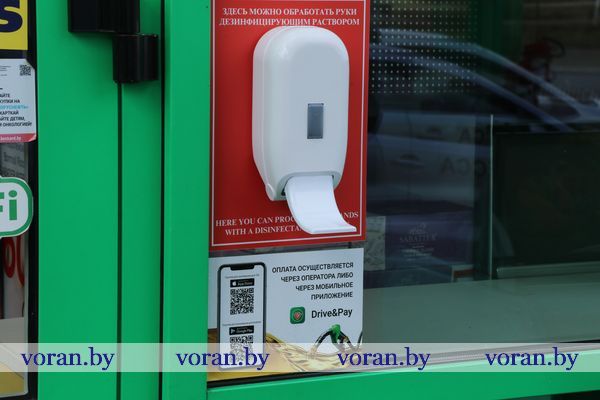 — Поток транспорта на АЗС после закрытия границ соседних стран уменьшился как минимум в три раза. Это, безусловно, сказалось и на экономической составляющей, — рассказывает начальник цеха АЗС №17 ОАО «Лиданефтепродукт» Виталий Пакшис. — Сейчас на автозаправочной станции введен санитарно-эпидемиологический контроль. Для персонала предписано строгое использование при работе защитных масок, перчаток. Возле касс внутри АЗС нанесены разграничительные линии, которые позволяют сохранять дистанцию между клиентами полтора метра, установлены защитные экраны. На входе и в зале в свободном доступе антисептики и одноразовые перчатки. Кстати, в продаже дезсредства и маски также имеются. Дистанцирование соблюдено и в части размещения столиков для клиентов, где они могут перекусить. Режим уборки регламентирован и, конечно, строго соблюдается.