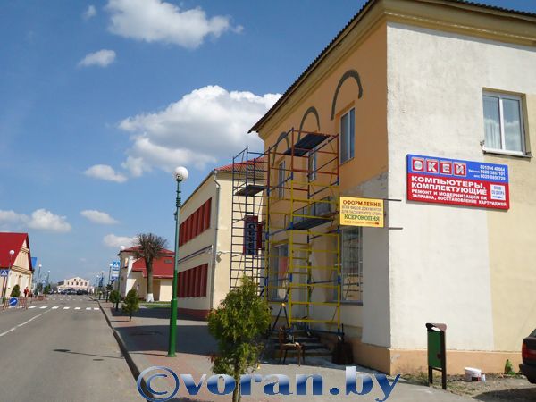 В районном центре полным ходом идет подготовка к юбилею Победы. Кипит работа по наведению порядка на улицах, территориях организаций, частных подворьях. Постепенно преображается место главных торжеств в честь праздника — городской стадион. РУП ЖКХ приводит в надлежащее состояние дороги, а организации «освежают» фасады зданий. Взгляды жителей и гостей поселка уже притягивает к себе обновленный яркий фасад здания, в котором располагается магазин компьютерной техники «Окей».