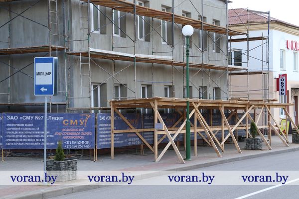 В этот день посетили и объект «Капитальный ремонт с модернизацией административного здания и гаражей Вороновского РОВД». Заказчиком по объекту является ОВД Вороновского райисполкома, подрядчик — ЗАО «СМУ-7» г. Лида. Здесь ситуация лучше. Территория ограждена металлическим ограждением, присутствуют необходимые знаки. Все материалы складируются в отведенном для этого месте, строительный мусор собирается в специальные контейнеры и вовремя вывозится для утилизации. В целом на стройплощадке порядок поддерживается.