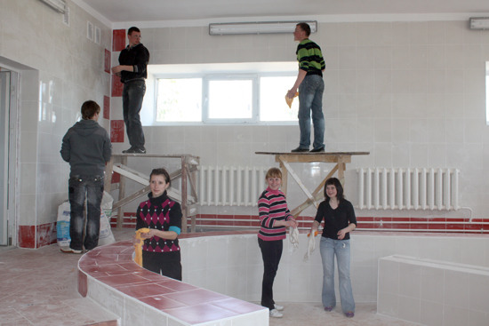 Третий трудовой семестр в этом году открыли учащиеся Вороновского колледжа, принявшие участие в акции БРСМ «Молодежь — детям». Одиннадцать волонтеров (девушки — Ю. Близневич, Е. Новицкая, А. Ковза, А. Лукашун, Ю. Захарова, А. Жамойть и юноши — Н. Николаев, А. Григелевич, П. Булгак, В. Вайткун, С. Лисовский) из первичной организации этого учебного заведения вызвались поучаствовать в подготовке бассейна детского сада №2 г.п. Вороново к открытию. Они смело взобрались на стремянки и вооружились моющими средствами и тряпками, чтобы очистить стены отремонтированного помещения и прилегающих к нему комнат от строительной пыли. Через несколько часов стены засверкали глянцем, а ребят искренне поблагодарила за помощь А.Ф. Малмыго, заведующая дошкольным учреждением. Похвала их немного смутила. Но ведь они ее заслужили!!! Коллективу детского сада с таким объемом работы справиться самостоятельно было бы намного сложнее.