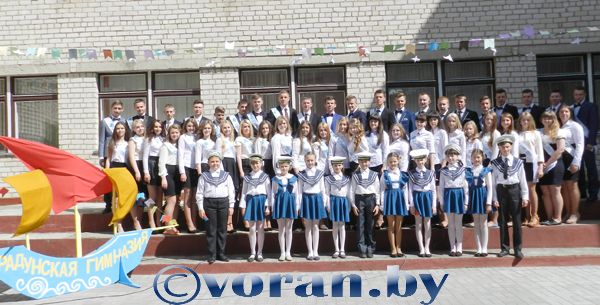 В Радуни линейка, посвященная последнему звонку, прошла в довольно не привычном формате: на «комфортабельном круизном корабле «Радунская гимназия». Ведущие в морской форме пригласили на борт корабля главных членов команды — гардемаринов-выпускников. Они поднимались на импровизированную палубу за руку со своими папами и мамами, только сейчас не родители вели их, а они родителей. И как прежде рядом с ребятами их бессменные рулевые — классные руководители и первые учителя И.И. Кривулько и В.С. Маньковская, А.С. Сальдюн и М.Я. Барковская, Г.Л. Стецевич и Г.В. Войткун. По традиции мероприятие началось с исполнения гимна и поднятия Государственного флага. Это почетное право предоставили семи девушкам — претенденткам на получение золотой медали: Яне Адамонис, Ульяне Барковской, Анастасии Лукашевич, Сильвии Малмыго, Карине Клапцовой, Диане Мушинской, Алене Юхно, а также неоднократному победителю областных и республиканских олимпиад Дмитрию Балько. Поздравления и напутствия прозвучали в тот день от капитана корабля — директора гимназии С.Б. Почобут, от учителей и родителей. Разделить праздник с радунскими гардемаринами прибыли гости: начальник отдела образования, спорта и туризма райисполкома Е.Я. Ганевич, начальник финансового отдела райисполкома Г.Ю. Шарко, председатель Радунского сельсовета С.В. Жук, председатель СПК «Гирки» Т.Я. Мушинский, председатель профкома СПК «Дотишки» А.Ю. Иода, которая вручила премии всем выпускникам. По доброй традиции пришли благословить гимназистов в большое плавание католические священники Витольд Лозовицкий и Павел Романовский.