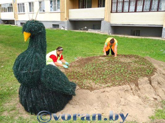 Вот такая малая архитектурная форма появилась в центре Вороново в скверике около памятника погибшим воинам и партизанам. Благодаря работникам РУП ЖКХ и автору идеи — мастеру по благоустройству Анне Тевель, совсем скоро павлин «распустит» свой хвост.