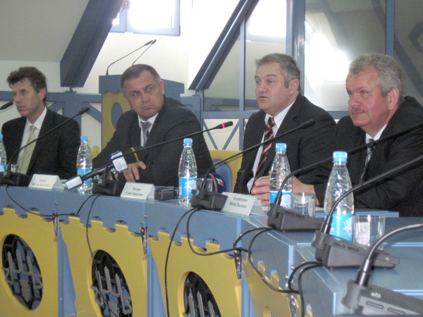 Экскурсия закончилась, и все проследовали в конференц-зал, который располагается на последнем этаже замка, где старинные гобелены и современная мебель органично сочетаются. Романтичное настроение сменилось деловым настроем. В зале появились председатель областного комитета С.Б. Шапиро, председатель Кореличского райисполкома В.Л. Шейбак, начальник управления идеологической работы П.К. Скробко и пресс-секретарь Гродненского облисполкома В.П. Железнякович. На пресс-конференции Семен Борисович четко и компетентно ответил на все задаваемые вопросы журналистов и даже более. Он рассказал о том, чем сегодня живет Гродненщина, о ее инвестиционных проектах, о планах на будущее, ну и, конечно, о спортивной жизни, достижения которой не могут не радовать. Поднимались и насущные вопросы в сфере агротуризма, наведения порядка на земле, в сельском хозяйстве, на производстве. В конце пресс-конференции журналисты искренне благодарили С.Б. Шапиро за внимание к прессе, за ставшие уже традиционными подобные мероприятия.