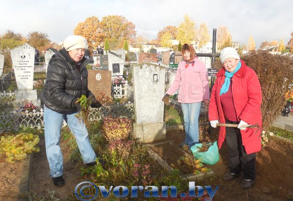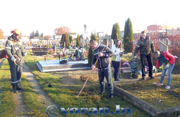 На працягу ўжо некалькіх год у нашым раёне праходзіць акцыя “Это нужно не мертвым, это нужно живым”. Актывісты РК ГА “БРСМ” пад кіраўніцтвам моладзевага лідара Э.В. Федаровіч і раённы савет ветэранаў арганізоўваюць добраахвотнікаў для прыбірання застаўшыхся без догляду магіл. Вось і зараз на іх прызыў адгукнуліся 18 навучэнцаў каледжа пад кіраўніцтвам настаўніка І.М. Казлоўскага, А.Ч. Муліца (РЭС), Т.Я. Дзіц (філіял “АтП №14”), М.С. Валіцкая (Воранаўская ЦРБ), Я.А. Бобін (ТЦСАН), П.Р. Ражаноўскі (РУП ЖКГ), І.Г. Андрушкевіч (БРСМ). За прыкладам Н.К. Пушнянковай, Т.Ф. Карповіч, Н.С. Дарашкевіч, Л.П. Урбановіч і Ф.І. Тумілевіч моладзь расчысціла ад пустазелля і хмызняку больш за пятнаццаць магіл. Да акцыі далучыліся і школьнікі некаторых навучальных устаноў раёна. Напрыклад, навучэнцы і педагогі школы-інтэрната не залежна ад пары года і не толькі перад памінальнымі днямі наведваюць з працоўным дэсантам магілы І.А. Котава і іншых былых ветэранаў-настаўнікаў, а таксама ахвяр фашызму.
