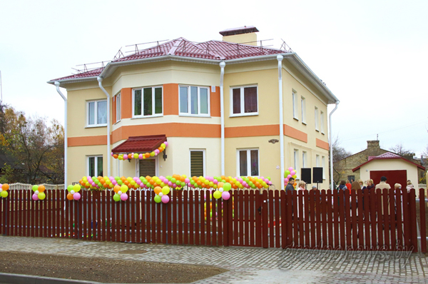 Просторное двухэтажное здание на участке, расположенном почти в центре города, появилось здесь в рекордно короткие сроки - чуть больше двух с половиной месяцев понадобилось строителям треста "Гродногорстрой" для возведения большого и уютного дома для детишек, которые обрели большую и дружную семью с любящими родителями.
