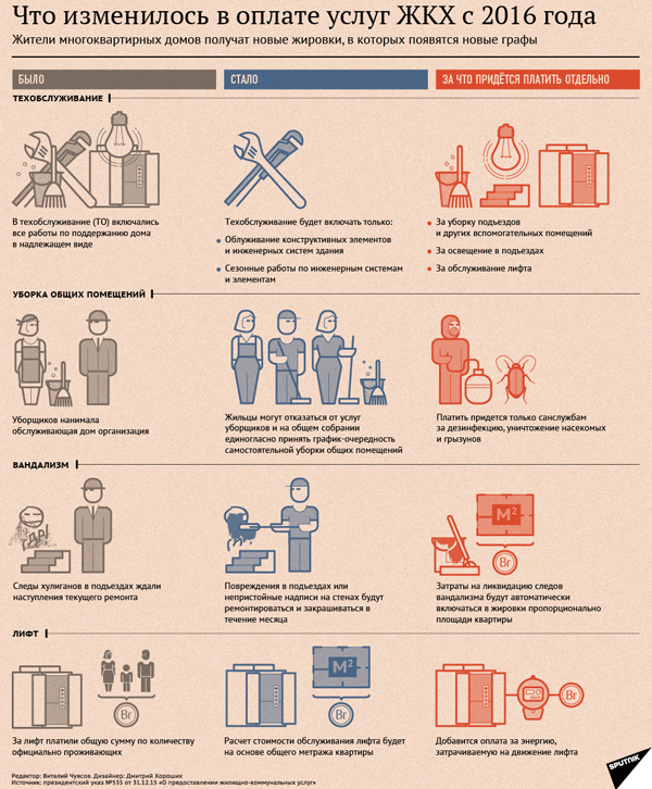 Во-первых, пересмотрен и уточнен перечень основных жилищно-коммунальных услуг. Указ предусматривает раскрытие самой «непрозрачной» услуги — техническое обслуживание жилого дома. Это позволит говорить о ее реальной стоимости и перейти на дифференцированные тарифы, в зависимости от комфортности дома, его этажности. Кроме того, повысит уровень возмещения затрат населением почти до 80% (ранее за техобслуживание 30% всей стоимости платили потребители, а 70% ложилось на плечи государства).