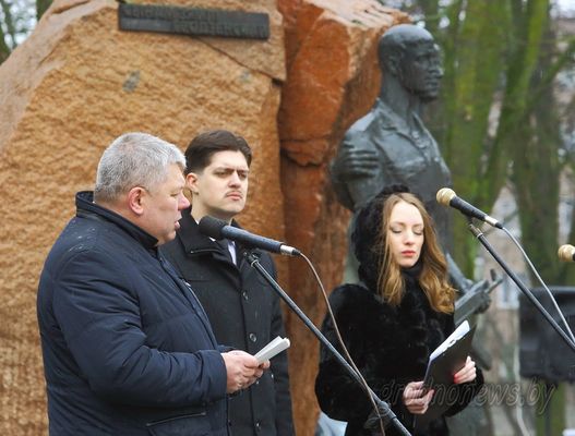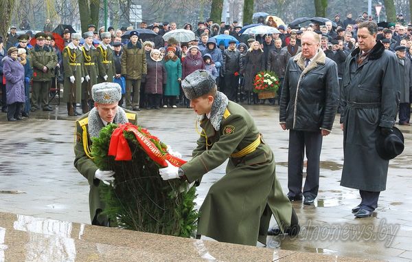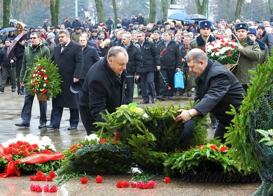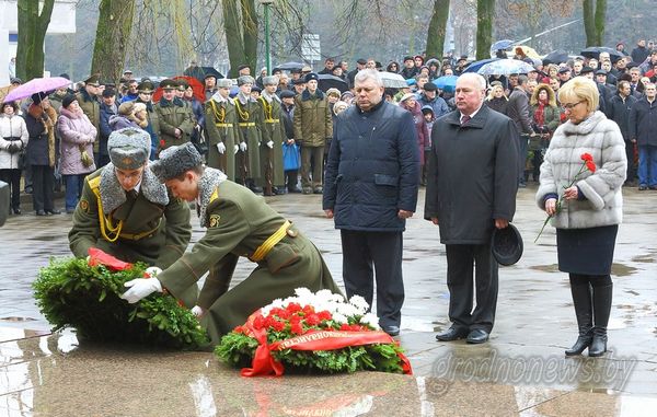 Венки и цветы к памятнику возложили заместитель председателя облисполкома Виктор Лискович, управляющий делами облисполкома Игорь Попов, председатель Гродненского горисполкома Мечислав Гой, председатель городского Совета депутатов Анатолий Никитин, заместитель председателя горисполкома Зоя Кулеша, представители предприятий и организаций города.