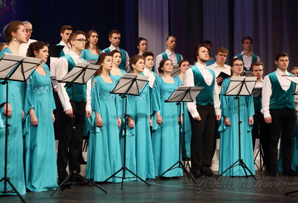 Наиболее широко представлена Беларусь, прибыли в Гродно также хоры из России, Украины, Польши, Румынии, Армении, Сербии и Франции. Открылся фестиваль концертом студенческого хора Белорусской государственной академии музыки в Гродненском областном драматическом театре. На снимке: студенческий хор Белорусской государственной академии музыки.