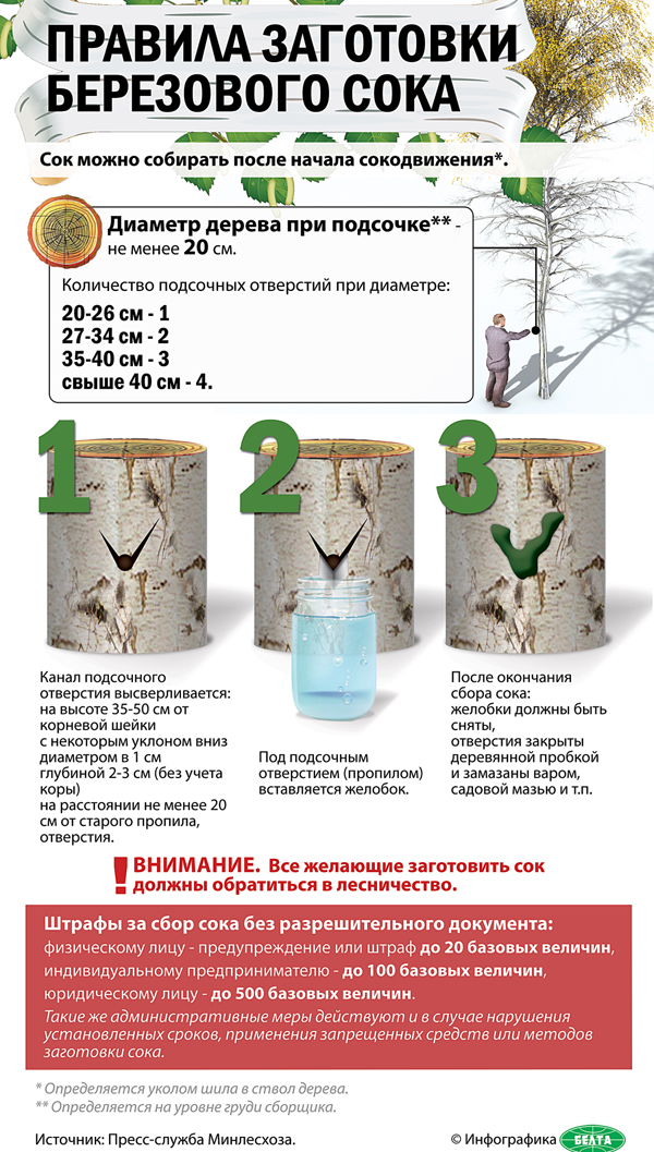 Жирмунское — 8(029) 132-84-91). Реализовываться он будет с лесосек. Осуществлять заготовку березового сока можно и бесплатно. Для этих целей в лесах специально отведены участки, где желающие могут самостоятельно собирать сок, соблюдая, естественно, установленные правила. Информацию о таких участках можно также получить в лесничествах.