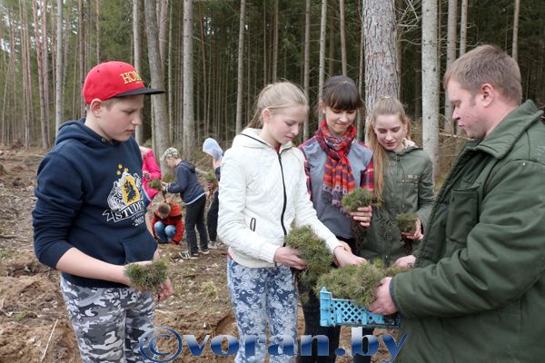 По традиции внести свой вклад в дело сохранения и приумножения лесных насаждений решили школьники Вороновщины. Это особенно порадовало организаторов, так как главной задачей «Недели леса» является воспитание подрастающего поколения, пропаганда рачительного отношения к лесу как национальному богатству, привлечение внимания общественности к решению задач сохранения и воспроизводства лесов Беларуси. На подмогу работникам лесного хозяйства вышло больше 300 учеников из Полецкишской, Беняконской, Конвелишской, Жирмунской, Погородненской, Заболотской школ, а также Радунской гимназии и школы-интерната. Самыми многочисленными помощниками оказались конвелишские ребята — 135 человек. Многие школы отправляли трудовой десант в леса несколько раз. Так организовали свою работу беняконские школьники (на снимке).