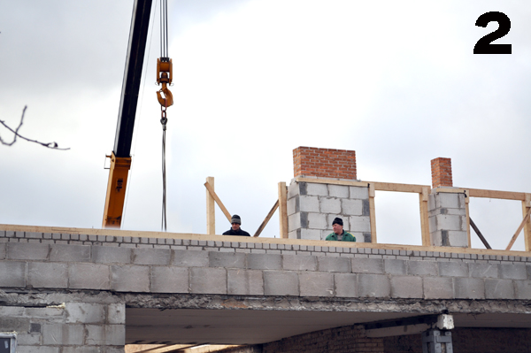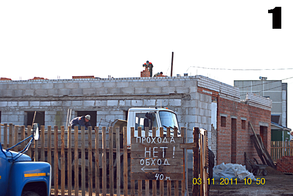 - вокруг строящегося дома при кладке наружных стен с внутренних подмостей не была выделена опасная зона;