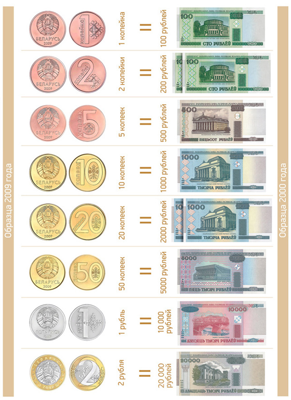 Банкам рекомендовано организовать бесплатный размен банкнот образца 2000 года на монеты образца 2009 года организациям торговли (сервиса), чтобы они уже 1 июля могли разменять и выдать сдачу покупателям новыми деньгами. Банкам также рекомендуется организовать с 1 июля перевозку организациям торговли (сервиса) денежной наличности образца 2009 года для обеспечения их потребности в размене без взимания платы за подкрепление в течение шести месяцев.