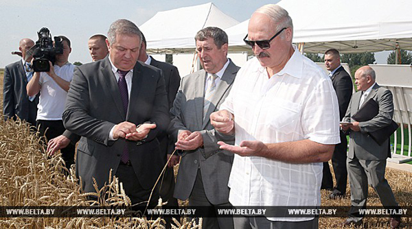 Александр Лукашенко на полях крестьянского фермерского хозяйства "Цнянские экопродукты"