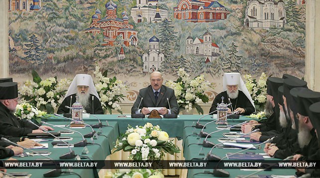 Президент отметил, что различные направления сотрудничества государству и церкви предстоит развивать вместе. «Необходимо вовлекать всех жителей в общественную деятельность на благо страны, воспитывая в них патриотизм и подлинную гражданскую ответственность», — подчеркнул белорусский лидер.