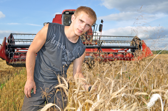 На снимке: комбайнер КСУП «Элит-Агро Больтиники» В. Сурконт на комбайне «Лида-1300» в 2009 году намолотил 750 тонн зерна. В нынешней жатве он будет стремиться превзойти прошлогодний результат.