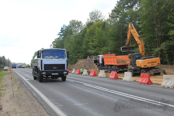 Подготовительный этап на гродненском участке, включая переносы инженерных коммуникаций, завершился раньше запланированного благодаря слаженной работе всех участников строительства. Участок разбит на два объекта. Первый – протяженностью чуть более 12 километров – от путепровода в Щучине до пересечения с дорогой Василишки-Желудок. Наряду с дорожно-строительным трестом №6 г.Гродно здесь трудятся дорожники ДСТ №1 из Витебска. Они выпрямляют и подсыпают ряд участков магистрали. На втором – от границы Минской и Гродненской областей до перекрестка в направлении Ивье – задействованы дорожно-строительные организации Гомеля, Могилева и Рогачева.