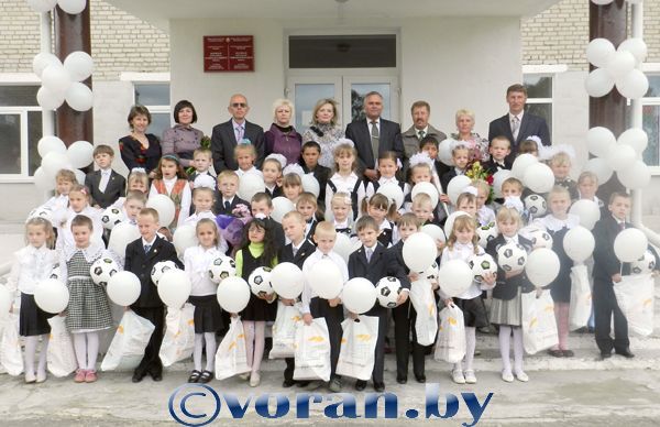 Более 18 тысяч первоклашек сельских школ со всей страны, в том числе и 219 ребят из нашего района, к концу первого в своей жизни учебного года на торжественных линейках получили в подарок футбольные мячи. Это событие прошло в рамках республиканской акции “Подари ребенку футбольный мяч!”, организаторами которой выступила Белорусская федерация футбола при поддержке Министерства образования, ОАО “Белагропромбанк” и СП “Санта Бремор”. В память о торжественном мероприятии каждый мяч украшен логотипами участников акции, изображениями рекламных персонажей — Агрика и Юкки. Еще ребята получили воздушные шары, флажки и открытки от ОАО «Белагропромбанка».