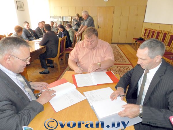 В пятницу состоялось подписание Соглашения между Вороновским районным исполнительным комитетом, нанимателями и Вороновским районным координационным Советом председателей профсоюзных комитетов на 2012-2015 годы.