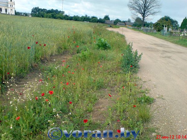Да и как цветет! На обочине дороги, проходящей вдоль кладбища в аг. Бенякони, почти как в сказке А. Волкова "Волшебник Изумрудного города", привольно растет мак. И если даже за одно найденное на частном подворье или огороде растение хозяина ждет приличный штраф, то на «ничейной земле», видно, ничего никому не грозит.
