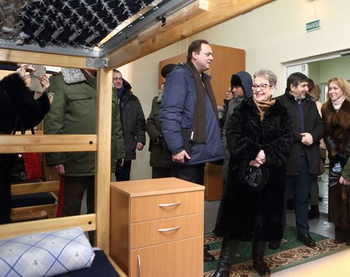 Гостей пригласили в новое здание учебного корпуса Института пограничной службы, возведенное в рамках проекта. Впечатлили оборудованные современными средствами и новой мебелью помещения для лекционных и групповых занятий, казарма со спальным помещением. Для гостей также провели экскурсию по зданию, построенному в рамках проекта и введенному в строй в 2015 году.