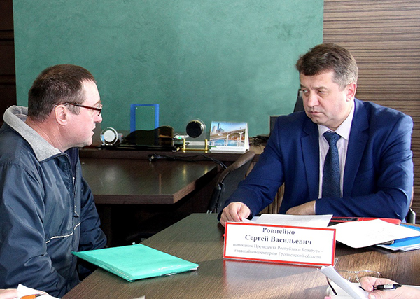 В четверг, 16 февраля, прием граждан в Берестовицком райисполкоме провел помощник Президента — главный инспектор по Гродненской области Сергей Ровнейко. Здесь он находился в связи с проведением в райисполкоме специального совещания по теме работы с кадрами. Но для удобства было решено пригласить после совещания и двух граждан, записавшихся к нему на запланированный на 17 февраля прием в Волковыске.
