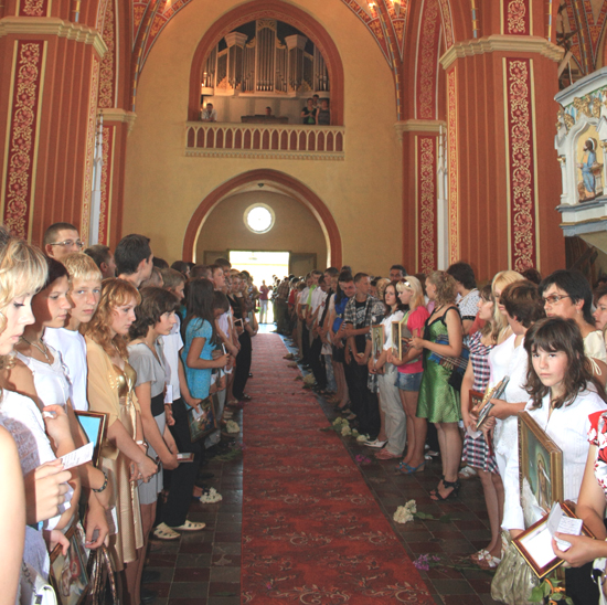 А еще недалеко от костела есть источник, из которого брали воду еще при строительстве храма, а она в нем не истощалась. В старых латинских документах ксендз Ян прочитал, что вода в этом источнике была лечебной. В одной польской газете была опубликована статья нашего земляка, который уже давно живет в Польше, где он рассказал не только о костеле, но и упомянул колодец, лечащий людей. Но, по словам настоятеля храма, исцеляет не вода, а вера. Ксендз Ян Петюн отыскал источник, очистил и облагораживает. Во время юбилейных торжеств ксендз-епископ Александр Кашкевич освятил его. И может быть, возродившийся источник — это добрый знак, что храм встретит еще не один свой юбилей!