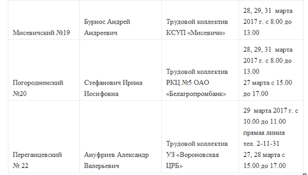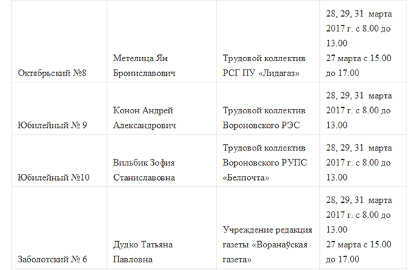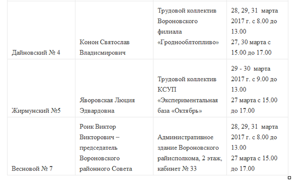 ГРАФИК приема граждан в Вороновском районе по вопросам реализации Декрета Президента Республики Беларусь от 02.04.2015г. №3 «О предупреждении социального иждивенчества»