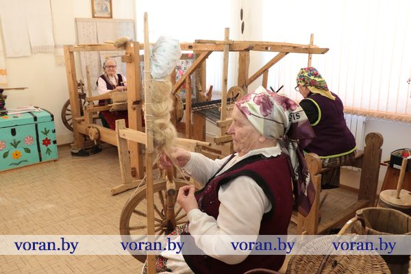 Думали ли журналисты, приехавшие на Вороновщину, что им доведется поучаствовать в мастер-классе по ткачеству от народного мастера Беларуси Станиславы Михно? Наверное, нет. Станислава Викентьевна — настоящий бриллиант Погородненского центра культуры и народного творчества. Она — искусная ткачиха, умелая прядильщица. Художественный руководитель Светлана Солманович с удовольствием презентовала гостям плоды творчества многих погородненских мастериц, знакомила с экспонатами музейной комнаты — предметами быта наших предков.