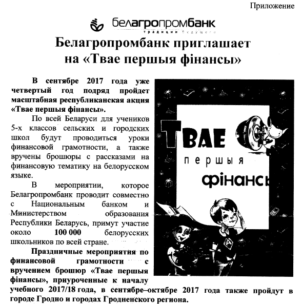 Белагропромбанк проводит акцию "Твае першыя фінансы"