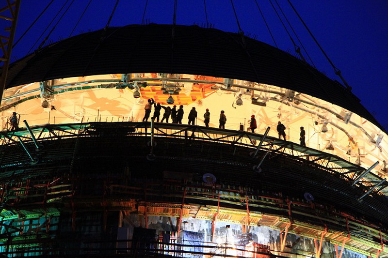 Установка купола на штатное место завершает работы по монтажу металлоконструкций внутренней защитной оболочки здания реактора.