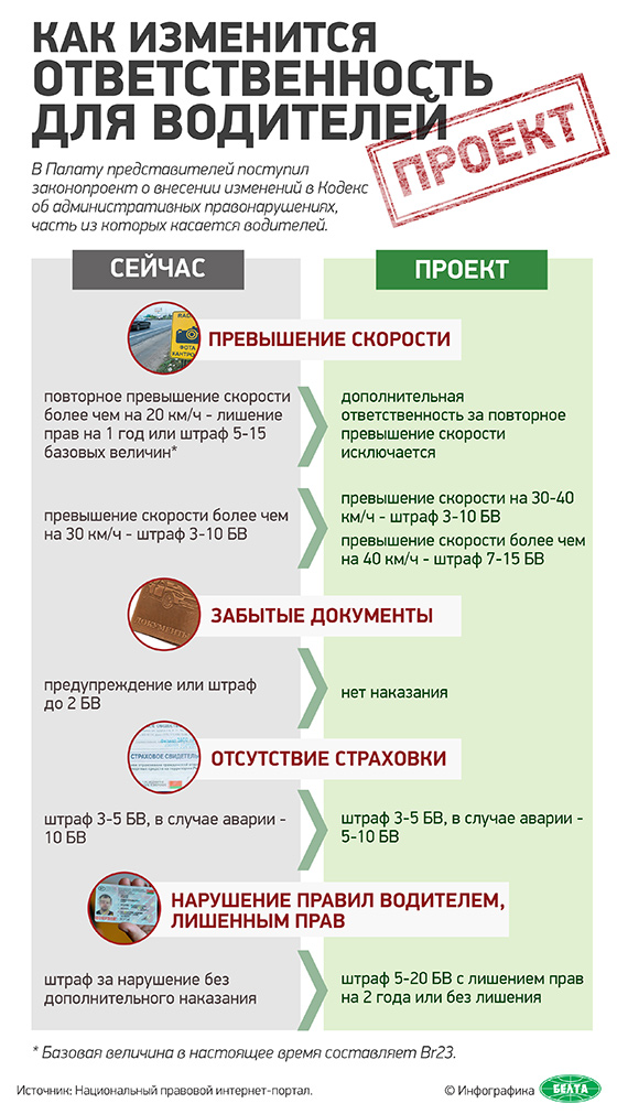 проект: штраф 3-5 БВ, в случае аварии - 5-10 БВ.