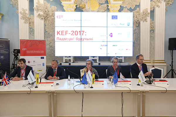 Конференция "Кастрычніцкі эканамічны форум "Основы будущего" (KEF-2107) прошла в Минске 2-3 ноября. Задача мероприятия - поиск решений, которые помогут заложить основы будущего страны и сократить разрыв между политикой и практикой. Среди спикеров конференции были первый заместитель премьер-министра Беларуси Василий Матюшевский, председатель правления Национального банка Павел Каллаур, главный советник председателя правления Нацбанка Александр Заборовский, директор по страновой экономике и политике Европейского банка реконструкции и развития Артур Радзивилл, глава представительства Европейского союза в Беларуси Андреа Викторин, региональный директор Всемирного банка по Беларуси, Молдове и Украине Сату Кахконен и другие.