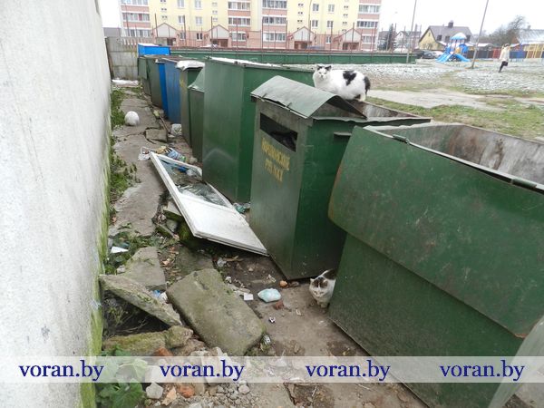 Имеются нарекания и на коммунальную службу, которая не всегда должным образом следит за содержанием площадок. По санитарным правилам они должны содержаться в чистоте, но скопившаяся грязь свидетельствует о нарушениях. Твердое покрытие на некоторых из них уже ушло в землю, ограждение во многих местах повреждено. Очень часто неприглядные картины возле площадки недалеко от магазина потребкооперации в д. Бояры и во дворах по улице Литовчика райцентра. А вот, например, контейнерная площадка возле кладбища в г.п. Радунь чистая, но к ней подойти можно только в сухую или морозную погоду, иначе придется пробираться через непролазное болото. Есть в этом городском поселке еще много мест, где из года в год не наводится порядок. Это и укромный уголок за овощесушильным заводом, поросший бурьяном, «украшает» который гора выброшенных яблок. Недалеко стоит красивый и ухоженный дом, а вот напротив его — настоящая свалка, чего там только нет: и колеса, и машина, и какие-то железяки…