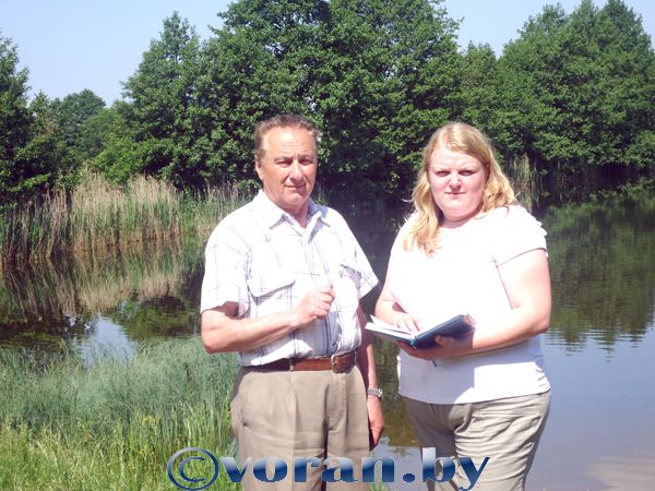 На снимке: Ф. Кулиш и С. Романович обсуждают состояние пруда в д. Полипница.