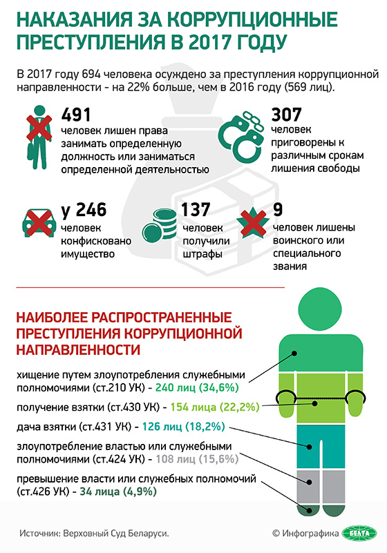 Инфографика: Наказания за коррупционные преступления в 2017 году Актуально 15 февраля 18 1441 http://www.belta.by/