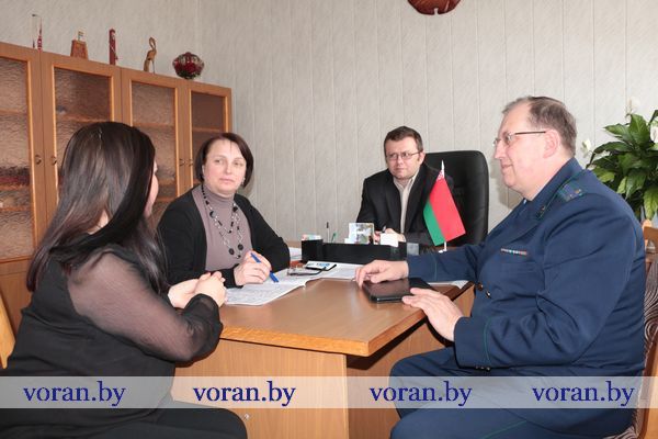 29 марта в Вороновском ПМС правовой инспектор труда Гродненской областной организации Белорусского профессионального союза работников строительства и промышленности строительных материалов Сергей Александрович Гарчичко провел профсоюзный прием граждан. На встречу с ним пришли работники предприятия. В консультировании обратившихся по жилищному вопросу, а также касающемуся норм законодательства, регулирующих сферу трудовых и связанных с ними правоотношений, приняли участие прокурор Вороновского района Валерьян Александрович Колесник и председатель районного объединения профсоюзов Елена Марьяновна Ястремская.