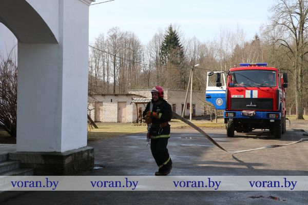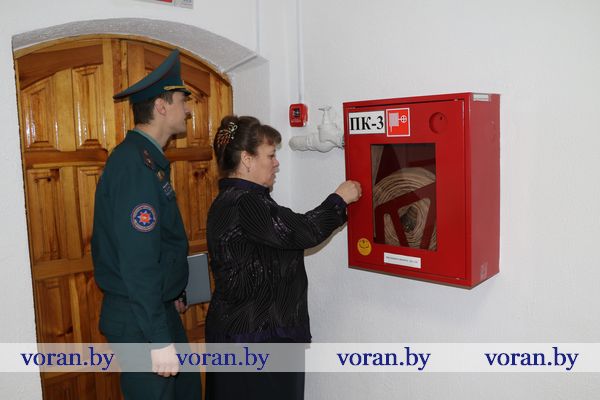 Комплекс профилактических мероприятий прошел в РПБ «Гайтюнишки». Начался он с изучения состояния пожарной безопасности зданий больницы: административно-хозяйственного и лечебного корпусов, пищеблока. Первый заместитель начальника Вороновского РОЧС Руслан Стасюк оценивал состояние эвакуационных путей и выходов, исправность и работоспособность технических средств оповещения, обеспеченность первичными средствами пожаротушения. Во время отработки плана эвакуации персонал административного корпуса продемонстрировал усвоенный алгоритм действий при пожаре или ЧС, а ответственные за пожарную безопасность учреждения — еще и умение пользоваться огнетушителями. Здесь же на территории больницы было проведено тактико-специальное занятие по реагированию и ликвидации возгорания в здании, представляющем историческую ценность. Для этого на место прибыла специальная техника и бойцы РОЧС.