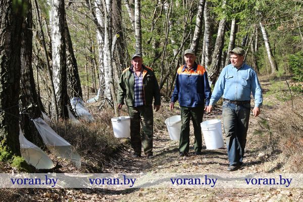 Доведенные планы у каждого из структурных подразделений Лидского лесхоза разнятся. Самые большие заготовки у Вороновского лесничества. Меньшего объема задача у коллег из Жирмун. Этой весной они работают на 26-м квартале возле деревни Лавцуны. Станислав Иванович Вашкевич, Михаил Иванович Демьянченков и Никодим Марьянович Синкуть выставили 500 сокосборников и планируют заготовить около 40 тонн. Удастся ли, решит погода. Сезон березового сока в этом году может получиться коротким, из холода в марте решительно перешли в жаркий апрель, а это не способствует заготовкам. Потому любителям вкусного и полезного напитка надо поспешить — при такой температуре сок не будет долго хорошего качества.