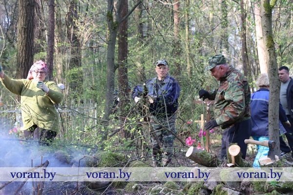 На субботнике сотрудники аппарата райисполкома во главе с председателем Николаем Розумом и Переганцевского сельисполкома наводили порядок на кладбище недалеко от деревни Тусуманцы. Это небольшое кладбище 30-х годов прошлого века. По рассказам местных старожилов здесь захоронены дети. Почему дети, чьи они? Теперь трудно установить. К сожалению, за прошедшие годы кладбище сильно заросло кустарником. Но после сегодняшнего субботника оно существенно преобразилось: вырублена дикая поросль, стали хорошо видны кресты, могилки. Благородную работу, истинно христианский долг исполнили участники субботника. Теперь этот уголок выглядит умиротворенно, а пришедшим помянуть усопших будет удобно возложить цветы, помолчать и помолиться…