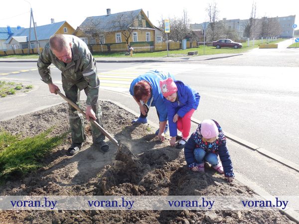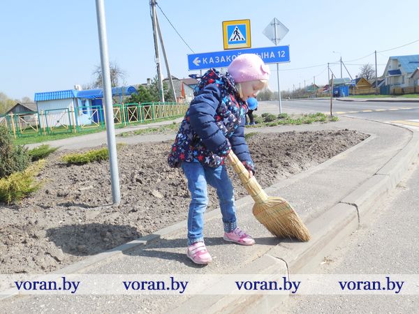 Позаботились жители агрогородка привести в порядок газоны, клумбы возле своих учреждений, липовую и березовую аллеи. Умиляли маленькие помощницы Гелены Тадеушевны Роткиной — девятилетняя Даша и четырехлетняя Вероника Белоцкие. Вероничка (на снимке) не только подсобила бабушке в прополке клумбы возле магазина, но и, по-хозяйски орудуя метелкой, навела возле нее чистоту.