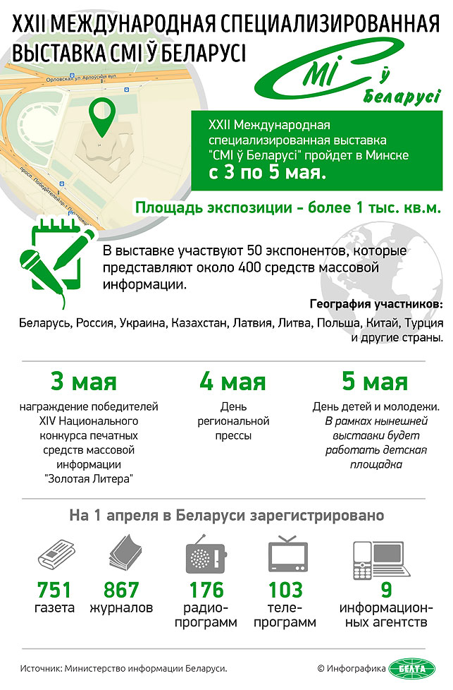XХII Международная специализированная выставка "СМІ ў Беларусі" проходит в выставочном комплексе по просп.Победителей, 14. Вход свободный.