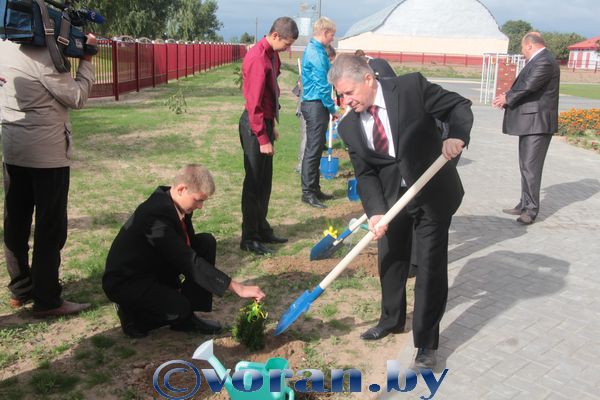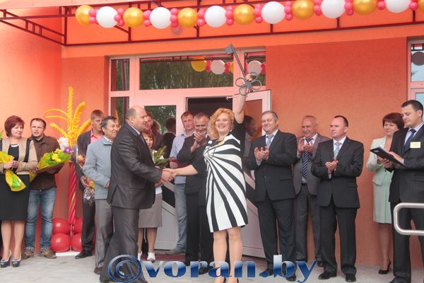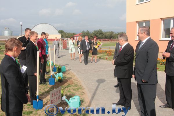 Слова благодарности облисполкому и губернатору С.Б. Шапиро за поддержку, финансовую помощь в строительстве выразил Н.А. Розум. Особо тепло он приветствовал педагогов, работников школы, учеников и их родителей, которые немало потрудились, сделали все возможное, чтобы праздник состоялся. Председатель райисполкома наградил ряд работников строительных организаций за качественную подготовку объекта. В свою очередь, Г.Ч. Залога приготовил приятный сюрприз дотишским ребятам и педагогам — сертификат на сумму 65 миллионов рублей для приобретения спортивного и хозяйственного инвентаря, мебели. Геннадий Чеславович передал символические ключи от школы ее директору — Валентине Викторовне Люленко, которая пригласила почетных гостей заложить на память о знаменательном дне аллею знаний.