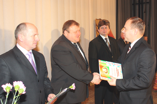 В минувшее воскресенье в зале районного Дома культуры по традиции чествовали лучших земледельцев и животноводов района. Поздравить сельских тружеников с Днем работников сельского хозяйства и перерабатывающей промышленности агропромышленного комплекса приехали гости из Лиды и Минска…На торжественном собрании, приуроченном главному празднику сельчан, начальник райсельхозпрода Иван Винцкевич подвел предварительные итоги года и поблагодарил всех аграриев за нелегкий труд. Лучших из них наградили Почетными грамотами управления сельского хозяйства и продовольствия Вороновского райисполкома и райкома профсоюза работников агропромышленного комплекса и денежными премиями от руководства района, ценными подарками от руководителей районных организаций и Лидских перерабатывающих предприятий. Поощрялись не только передовые комбайнеры, водители, механизаторы, операторы машинного доения, операторы по выращиванию скота, руководители и специалисты хозяйств, но и победители конкурсов в различных номинациях по производству и продаже государству сельхозпродукции, а также организации и учреждения, оказавшие весомую помощь в напряженные периоды и принимавшие активное участие в сельскохозяйственных работах (УО «Радунская общеобразовательная гимназия», директор Галина Ганевич, УО «Радунская государственная специальная общеобразовательная школа-интернат для детей с трудностями в обучении имени Ивана Котова», директор Виктор Михаловский, УО «Вороновский государственный профессионально-технический колледж сельскохозяйственного производства», директор Иван Кахоцкий, 24-я группа мастеров УО «Вороновский государственный профессионально-технический колледж сельскохозяйственного производства», куратор Геннадий Цеслюк, мастер Кристина Бегун, УО «Беняконская общеобразовательная средняя школа», директор Людмила Силицкая и УО «УПК Заболотские ясли-сад-средняя общеобразовательная школа», директор Михаил Лях). Ощущение праздника создавали народный ансамбль «Лявоны» и артисты Вороновского РДК, встречавшие передовиков своими концертными номерами.