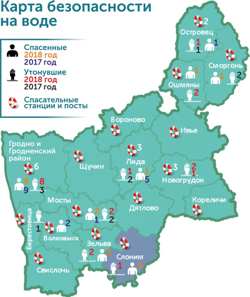 С 28 мая по 3 июня в реках и водоемах области утонули 4 человека: при купании в озере Юбилейном, реке Неман ( возле деревни Солы) и техническом водоеме в деревне Войниловичи Мостовского района. Один человек упал в воду сажалки в деревне Рыбница Гродненского района.
