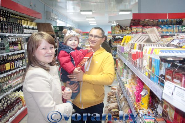 Молодая семья Войтукевич: «Что и говорить, здесь найдет себе по вкусу продукты даже самый требовательный гурман! Для современного человека, ведущего динамичный образ жизни, одним из решающих факторов при выборе магазина является богатый ассортимент полуфабрикатов и уже готовых к употреблению блюд. Молодцы, что позаботились и о возможности приобретения витаминной продукции: полки у входа просто ломятся от свежих овощей и фруктов. Не забыли о сладкоежках. Только шоколада я насчитала 15 видов, и все наши — белорусские. Радует, что появились и сопутствующие товары, жаль, что пока малый выбор.»
