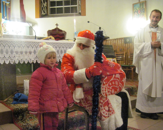 В этот день Святой Николай (Дед Мороз, Санта Клаус, Святой Миколай) приносит ночью подарки детям и взрослым. Такую добрую традицию поддерживают и у нас в костелах. И этот год не стал исключением: в этот день на роратней службе ребят посетил Святой Николай с большим красным мешком, наполненном конфетами. Ребята ему рассказывали стихотворения, пели песни (на снимке).
