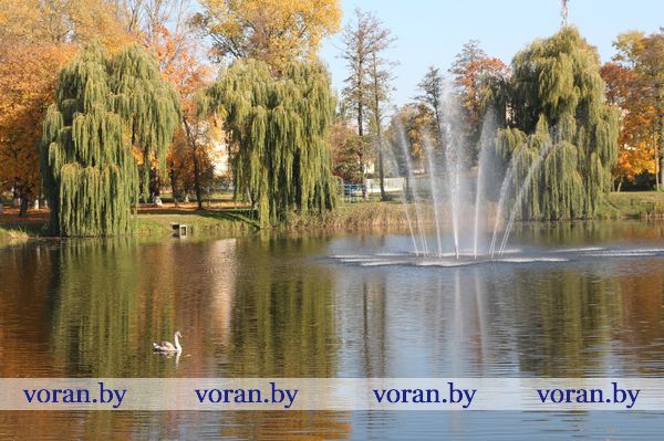 Пешая прогулка продолжилась вдоль озера. Фотокорреспонденты использовали момент и запечатлели это красивейшее место. Дорожки и малые архитектурные формы, детская площадка, плакучие ивы, склонившие ветви к водной глади, и фонтан, бьющий из центра водоема. Летом здесь практикуют кинопоказы под открытым небом. Понятно, почему это место полюбилось для отдыха горожанам.